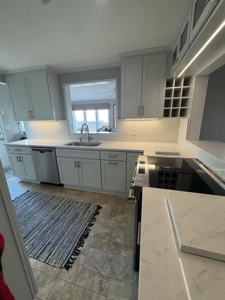 GWC’s latest kitchen completion, super small but packed full of detail. Loving the full height backsplash with waterfall edge up to the transition bar tops. New 1/2” inset light bar product by American Lighting tradition, everything dimmable. See more pics:(7) Adam Wolf - GWC’s latest kitchen completion, super small but... | Facebook
